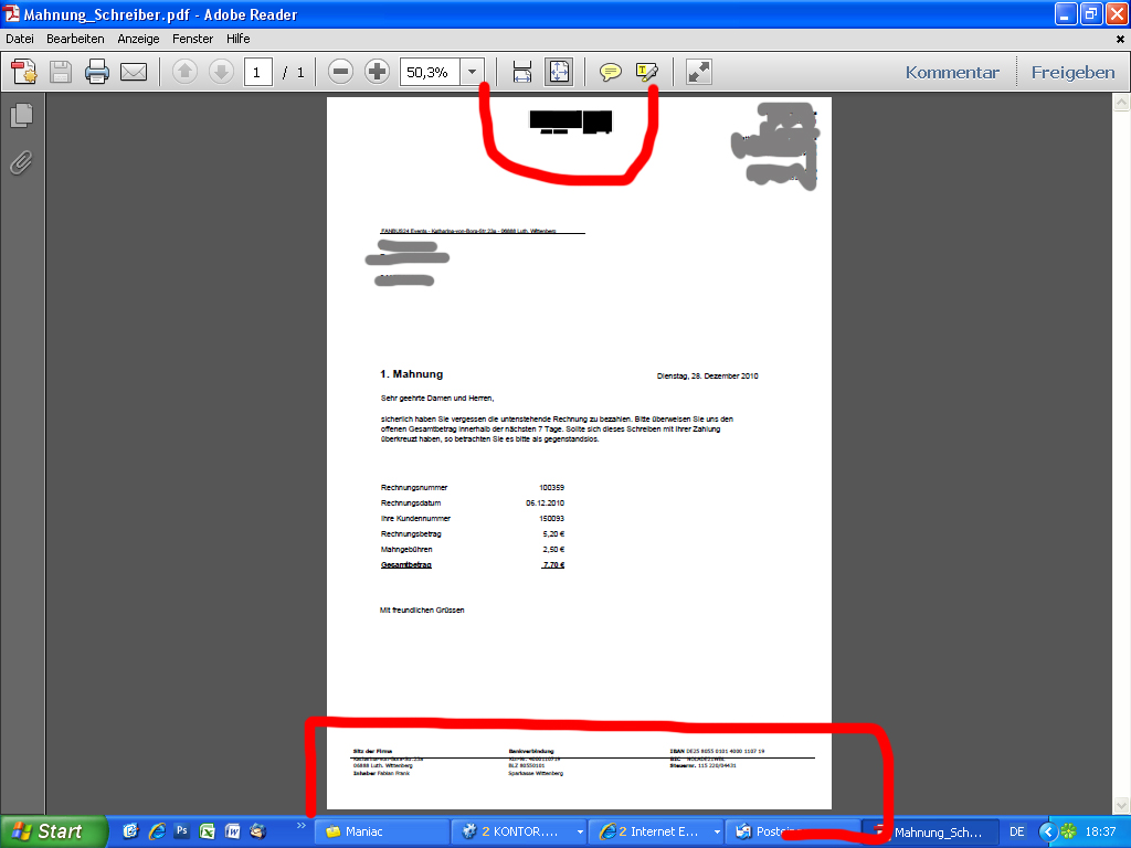 Ich habe alles soweit angepasst, aber wenn ich eine Mahnung aufrufe, stimmt die Anordnung nicht, siehe Anhang.